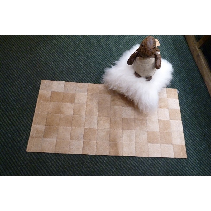 Tapis patchwork en carreaux de 10cm x 10cm, véritable peau de vache naturelle.